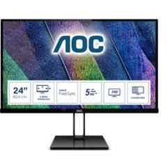 Introducing the AOC 24V2Q 23.8 inch LED Monitor, a sleek and powerful addition to the Monitors category. With its slim profile and stunning display, this monitor is perfect for both work and play. The 23.8-inch display size offers ample screen real estate, while the 1920x1080p resolution ensures crystal-clear visuals. The monitor's dimensions of 18x53.74x42.3 cm make it a compact and space-saving choice. Featuring a refresh rate of 75 Hz, you'll experience smooth and fluid motion in your favorite games and videos. The AOC 24V2Q can be easily mounted on both desks and walls, providing versatile placement options. In the package, you will find everything you need, including the monitor itself, a power cable, VGA cable, HDMI cable, Display Port cable, power adapter, user guide, and manuals. The sleek black color adds a touch of elegance to any setup. Upgrade your viewing experience with the AOC 24V2Q LED Monitor.