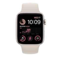 Upgrade your fitness routine with the Apple iWatch SE 44mm Starlight Aluminium Case GPS Smart Watch. This sleek smart watch features a high-resolution 448x368p display that makes it easy to track your workouts and stay connected on the go. The durable aluminium case and sports band are perfect for active lifestyles, while the built-in GPS helps you stay on track with your fitness goals. With the Apple iWatch SE, you can monitor your heart rate, track your steps, receive notifications, and more all from your wrist. Take your fitness to the next level with this stylish and functional smart watch from Apple.