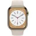 Introducing the Apple Series-8 45mm Stainless Steel Case Gold GPS + Cellular Watch with Regular Starlight Sport Band. This sleek and stylish watch is perfect for tech-savvy individuals who value both functionality and fashion. With a battery life of up to 18 hours, you can stay connected all day long. The watch comes equipped with advanced sensors such as Blood Oxygen App, ECG App, High \u0026 Low Heart Rate Notifications, and more. Its size of 45mm is the perfect combination of style and comfort. The package includes the watch with Sport Band and USB-C Magnetic Fast Charging Cable. Don't miss out on this must-have item in the IT \u0026 Electronics category from the trusted brand Apple. Shop now and experience the ultimate smartwatch technology with the Apple Series-8 45mm Stainless Steel Case Gold GPS + Cellular Watch.