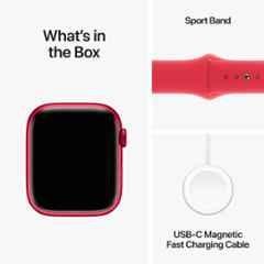Stay connected and stylish with the Apple 9 45mm Red Aluminium Case GPS \u0026 Cellular Smart Watch. This sleek smart watch features a stunning 45mm display size and comes with a comfortable M/L Red Sport Band. With water resistance up to 50 meters, you can take this watch wherever you go without worry. Whether you're tracking your workouts or staying on top of notifications, the Apple Smart Watch has you covered. Stay on top of your health goals with the built-in heart rate monitor and activity tracker. Get the Apple 9 and elevate your daily routine in style.