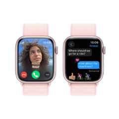 Stay connected and in style with the Apple 9 45mm Pink Aluminium Case GPS \u0026 Cellular Smart Watch with Light Pink Sport Loop. This sleek and sophisticated smart watch from Apple is perfect for those on the go. With a water resistance of up to 50m, you can take this watch wherever you go, whether it's to the gym or out for a swim. The vibrant pink aluminum case perfectly complements the light pink sport loop, giving you a chic look that's sure to impress. With a display size of 45mm, this smart watch is easy to read and navigate, making it the perfect accessory for your active lifestyle. Stay in touch, track your fitness goals, and look great doing it with the Apple 9 Smart Watch.