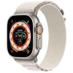 Stay connected in style with the Apple Ultra 49mm Titanium Case GPS + Cellular Watch. Featuring a sleek titanium case and a medium Starlight Alpine loop band, this smart watch exudes sophistication. The Retina display provides a clear view of notifications, messages, and health data. With GPS and cellular connectivity, you can track your workouts and stay in touch without missing a beat. Part of the Ultra series, this watch combines durability and functionality in a compact 49mm size. Upgrade your wrist game with the Apple Ultra 49mm Titanium Case GPS + Cellular Watch in Starlight, item code MQFR3-UL-CE.