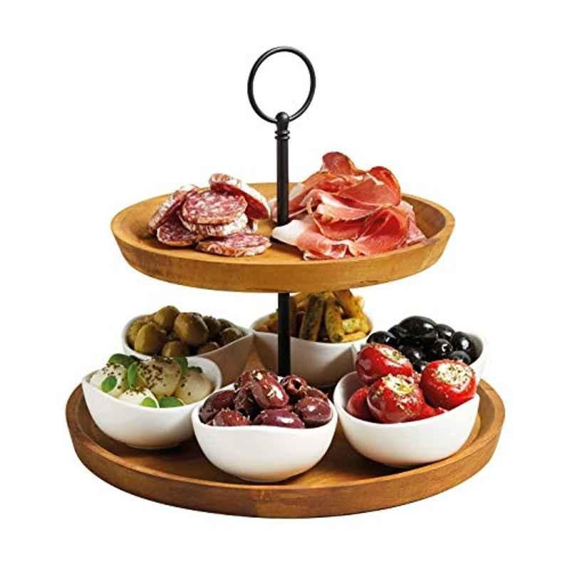 Turn your Starters into a Stunning Centrepiece with This Gorgeous Two-Tier Serving Plate, Complete with an Easy-Carry Handle.
