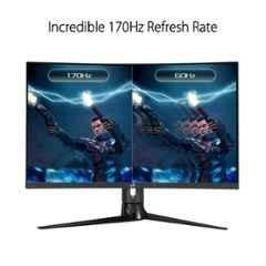 Introducing the ASUS ROG Strix XG32VC, a cutting-edge gaming monitor that delivers exceptional visuals and an immersive gaming experience. With a generous 31.5-inch display size and a stunning WQHD 1400P resolution of 2560x1440p, this monitor brings games to life with sharp, crystal-clear detail. The ultra-fast 170 Hz refresh rate ensures smooth gameplay, minimizing lag and providing a competitive edge. Whether mounted on your desk or on the wall, the versatile mounting options make it easy to find the perfect viewing angle. The 1 ms response time ensures lightning-fast reactions, while the 125% sRGB color gamut guarantees vibrant and accurate colors. Please note, the image is for reference purposes only. Experience gaming like never before with the ASUS ROG Strix XG32VC.