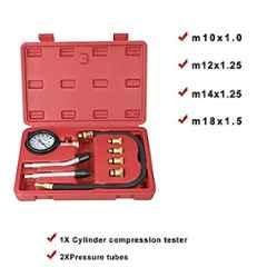 Introducing the Automotive Car Petrol Engine Compression Tester Set from the renowned brand, Generic. This comprehensive tool kit is a must-have for all automotive enthusiasts and professionals alike. Designed for petrol engines, it allows you to accurately measure the compression levels of your car's engine, ensuring optimal performance and diagnosing potential issues. The set includes all the necessary components, such as gauges, adapters, hoses, and a sturdy carrying case for easy storage and transportation. With its durable construction and precise readings, this compression tester set is built to last and provide reliable results. Please note that the image is for reference purposes only. Upgrade your collection of automotive tools with this exceptional product from Generic.