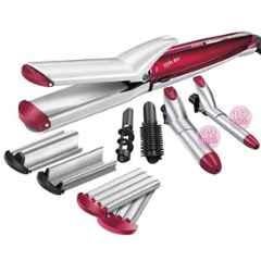 Introducing the Babyliss Silver Multi Purpose Hair Styler with 10 Accessories, the ultimate beauty appliance for all your hair styling needs. This versatile styler comes with 2Pcs Doubled Face Plates for straightening and crimping, 1Pcs Deep Wave Plates for creating stunning waves, and 2Pcs Curling Irons in 19mm and 32mm sizes for different curl styles. The package also includes 4Pcs accessories such as a brush sleeve, spiral sleeve, section clips, and hairpins, all conveniently stored in a stylish storage pouch. The Babyliss Silver Multi Purpose Hair Styler is a must-have for any beauty enthusiast. (Item Code: MS22SD, Temperature: 180 deg C, Width: 19 mm) Please note that the image is for reference purposes only. Transform your look with Babyliss!