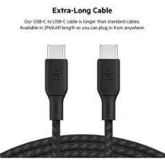 Upgrade your charging and data transfer experience with the Belkin 3m Nylon Black USB-C to USB-C 2.0 Braided Cable (BKN-CAB014BT3MBK), combining superior durability, power, and style into one exceptional product.