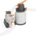 Introducing the Bestway Flowclear 1500 Gallon Sand Pool Filter Pump, an essential addition to your pool maintenance routine. This high-quality pump is designed for efficiency and durability, ensuring crystal clear water all season long. With a generous capacity of 1500 gallons, it easily handles even larger pools, providing superior filtration and circulation. As part of our Pumps \u0026 Motors category, it guarantees optimum performance and reliability for your pool equipment. The Bestway brand is widely recognized for its innovation and superior quality, and this pump is no exception. Please note that the product image is for reference purposes only. Keep your pool pristine with the Bestway Flowclear 1500 Gallon Sand Pool Filter Pump.
