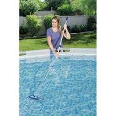 Introducing the Bestway 9ft Flowclear Aqua Pool Cleaning Kit, the ultimate solution for maintaining crystal clear water in your swimming pool. Specifically designed for the Camping \u0026 Hiking category, this high-quality cleaning kit from the renowned brand Bestway is a must-have for outdoor enthusiasts. With a length of 9ft, this kit ensures a thorough clean for pools of any size. The package contents include 1 pole, 1 vacuum head, and 1 set of skimmer heads, providing you with all the essentials needed to keep your pool pristine. Please note that the image provided is for reference purposes only. Upgrade your pool cleaning routine with the Bestway 9ft Flowclear Aqua Pool Cleaning Kit.