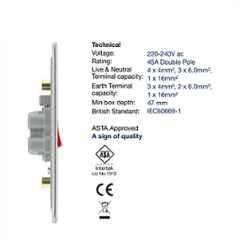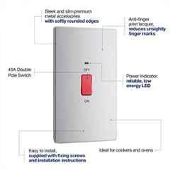 BG Electrical 45A 2 Pole Alloy Steel Large Cooker Control Unit with Power Indicator, FBS72-01 will match all your Circuit Breakers & Fuses requirements in UAE. With lots of features and excellent functioning BG Electrical 45A 2 Pole Alloy Steel Large Cooker Control Unit with Power Indicator, FBS72-01 will never disappoint you. This product is one of the best Circuit Breakers & Fuses from BG Electrical available at Moglix.ae. This product meets all the company standards when it comes to safety and durability. Get your hands on new BG Electrical 45A 2 Pole Alloy Steel Large Cooker Control Unit with Power Indicator, FBS72-01 at Moglix.ae and enjoy a hassle-free online shopping experience.