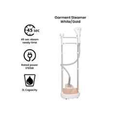 Introducing the Black \u0026 Decker 1785W Plastic White \u0026 Gold Garment Steamer, GSTM2050-B5, the perfect addition to your Appliances and Utilities collection. Made with durable plastic material, this garment steamer has a generous capacity of 2L, allowing you to steam multiple garments without needing frequent refills. The sleek white and gold design adds a touch of elegance to your home while the powerful 1785W motor ensures quick and efficient steaming. Say goodbye to wrinkles and creases with ease using the Black \u0026 Decker Garment Steamer. Item code GSTM2050-B5. Add this must-have appliance to your home today!