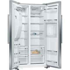 Introducing the Bosch 598L 2 Door Side By Side Refrigerator, KAG93AI30M, the perfect addition to your kitchen. With a spacious capacity of 598 liters, this refrigerator is ideal for storing all your groceries and beverages. The stainless steel finish gives it a sleek and modern look that will enhance any kitchen decor. With dimensions of 1787x908x707 mm, this refrigerator is perfect for any kitchen size. The Bosch refrigerator operates at a frequency of 50 Hz and a voltage of 220-240 V, ensuring efficient and reliable performance. Don't miss out on this top-of-the-line refrigerator, with item code KAG93AI30M.