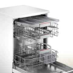Introducing the Bosch Series-4 60cm 12 Place White Dishwasher, SMS4HMW26M, a sleek addition to your kitchen. With a capacity of 12 place settings, this freestanding dishwasher in classic white is a perfect blend of style and functionality. The dimensions of 84.5 x 60 x 60 cm allow for easy installation in any kitchen space. Part of the Series 4 range by Bosch, this dishwasher is designed for efficiency and convenience. Please note, the image is for reference only. Elevate your kitchen with the Bosch Series-4 60cm 12 Place White Dishwasher, SMS4HMW26M. Item Code: SMS4HMW26M.