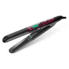The Braun Satin Hair 7 200 deg C Black Hair Straightener, ST750 is a game-changer in hair styling. With a sleek black design and a 2m cable for convenience, this straightener reaches temperatures of 130-200 deg C in just 40 seconds. Its key features include a cool tip, auto shut off, floating plate, temperature boost button, and temperature memory function. The 100% ceramic Nano glide plates are suitable for all hair types and colors, while the IonTec technology infuses your hair with ions for a smooth and shiny finish. The Colour Saver technology reduces color fade by up to 70%. With manual temperature regulation and advanced temperature control display, this straightener offers 100% styling precision every time. Braun's innovative technology identifies and selects the perfect temperature for your hair type, ensuring optimal results. Get salon-quality hair styling at home with the Braun Satin Hair 7 200 deg C Black Hair Straightener, ST750.