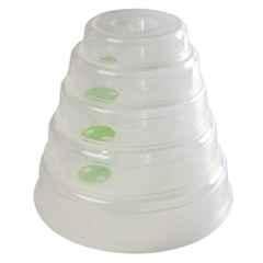Upgrade your kitchen with the Evriholder 1497A12-AMZ 5 Pcs Plastic Clear Round Simply Served Simps Microwave Cover Set. Experience the convenience and elegance of these microwave covers today.