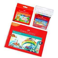 Introducing the Faber-Castell 36 Sheets A4 120 GSM Paper Assorted Drawing Book with 12 Pcs Wax Crayon \u0026 12 Pcs Felt Pen Colour, a must-have for art enthusiasts of all ages. This premium quality drawing book is perfect for unleashing creativity and exploring different artistic techniques. With its 36 sheets of A4 size paper, it offers ample space to bring your imagination to life. The 120 GSM thickness ensures durability and prevents ink bleeding. The assorted colors add vibrancy to your artwork, while the included 12 pcs wax crayons and 12 pcs felt pens provide endless possibilities for coloring and shading. The package also includes washable jumbo wax crayons and felt pens, ensuring easy clean-up and convenience. Crafted by renowned brand Faber-Castell, this drawing book guarantees superior quality and performance. Ideal for both beginners and professionals, this set is a must-have for any artist. So grab your set today and let your creativity soar!