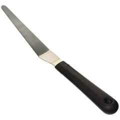 Introducing the Fat Daddios 5 inch Stainless Steel Offset Spatula with Tapered Point, SPAT-TPROS, a must-have tool in every kitchen and pantry. Designed by the trusted brand Fat Daddios, known for their high-quality baking supplies, this offset spatula is perfect for all your baking needs. Made of durable stainless steel with a plastic handle, it ensures years of reliable use. The sleek black and silver color adds a touch of elegance to your kitchen. With a length of 9 inches, it provides just the right balance of control and comfort. This spatula is suitable for icing cakes, spreading fillings, or ganache, making it ideal for professional bakers or baking enthusiasts. Its tapered point allows for precise and delicate work. With its 5-inch blade length, it offers the perfect size for various tasks. Please note, the images are for reference purposes only. The item code for this spatula is SPAT-TPROS. Upgrade your baking experience with the Fat Daddios 5 inch Stainless Steel Offset Spatula!