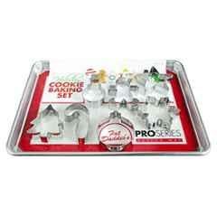 Each set includes 7 pcs of durable stainless steel cutters in stunning silver, red, and white colors. The set also includes a silicone baking mat for effortless cookie release and a lightweight yet sturdy aluminum half-sheet baking pan for even baking. With its elegant design and beautiful color combination, it is sure to make a statement in your kitchen.