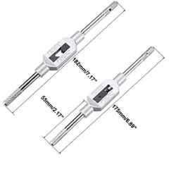 Introducing the FHT Adjustable Tap Wrench Handle, a versatile tool designed for precision and ease. Perfect for both professional and DIY enthusiasts, this tap wrench handle is suitable for a wide range of metric taps with handle widths ranging from 1mm to 10mm. With a sturdy construction and a length of 180mm, it provides a comfortable grip and excellent control for all your tapping needs. The chrome-plated finish not only adds a touch of elegance but also enhances durability, making this wrench handle a reliable companion for any project. Experience seamless tapping with the FHT Adjustable Tap Wrench Handle. Categorized under \