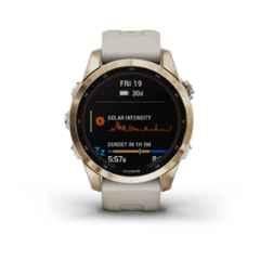 Introducing the Garmin Fenix 7S Sapphire Solar Edition 42mm Cream Gold Smart Watch, the perfect blend of style and technology. This sleek 42mm watch features a stunning cream gold color that will elevate any outfit. With a battery life of up to 14 days, you can stay connected and on top of your fitness goals without constantly worrying about charging. The integrated sensors, including Pulse Ox, provide accurate data to help you track your health and wellness. The item code 010-02539-21 ensures you are getting a high-quality Garmin product from the Fenix 7S series. Upgrade your smart watch game with the Garmin Fenix 7S Sapphire Solar Edition.