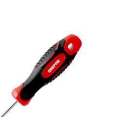 Introducing the Geepas 125mm CrV Red \u0026 Black Slotted Precision Screwdriver, GT59083, a must-have tool for every handyman and DIY enthusiast. Crafted with high-quality Chromium Vanadium Steel, this slotted screwdriver offers exceptional durability and strength to withstand heavy-duty tasks. The comfortable rubber handle ensures a firm grip, allowing for precise and controlled movements. Its eye-catching red and black color combination adds a touch of style to your tool collection. With a length of 125 mm, this screwdriver is compact and easy to maneuver in tight spaces. The model GT59083 features a SL 3 tip size, ideal for a variety of slotted screws. The chrome finish not only enhances its appearance but also provides resistance against corrosion. Choose Geepas for unmatched performance and reliability.