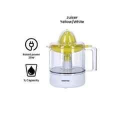 Introducing the Geepas 1L 25W Plastic Yellow \u0026 White Citrus Juicer, GCJ9900. This incredible appliance, part of the Appliances and Utilities category, is brought to you by the renowned brand Geepas. Made with sturdy plastic material, this juicer has a vibrant yellow and white color scheme that will brighten up any kitchen. With a capacity of 1L, it can easily handle a generous amount of citrus fruits. Powered by electricity, this juicer offers convenience and efficiency, ensuring you get every drop of delicious juice. The model GCJ9900 boasts a power of 25W, allowing for quick and effortless juicing. Get ready to enjoy refreshing homemade citrus juice like never before with the Geepas Citrus Juicer, a must-have addition to your kitchen.