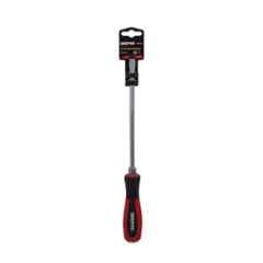 Introducing the Geepas 200mm Chromium Vanadium Steel Red \u0026 Black Slotted Screwdriver, a perfect addition to your toolbox. Designed for utmost durability, this slotted screwdriver is crafted from high-quality Chromium Vanadium Steel, ensuring its long-lasting performance. The comfortable rubber handle provides a secure grip and reduces hand fatigue during use. Its eye-catching red and black color combination adds a stylish touch to your collection. With a length of 200mm, this screwdriver is ideal for various tasks. The model GT59219 features a SL 8 tip size, allowing you to easily tackle any slotted screw. Its chrome finish adds a sleek look to the tool, making it a must-have for both professionals and DIY enthusiasts. Choose Geepas, a trusted brand that guarantees top-notch quality and reliability.