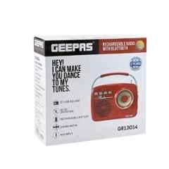 Introducing the Geepas 5V Rechargeable Radio With Bluetooth, GR13014, the ultimate companion for music enthusiasts. This versatile device combines the functionality of a radio, Bluetooth speaker, and rechargeable battery, making it perfect for any occasion. With its sleek and compact design, this radio fits seamlessly into any space, whether at home or on the go. The built-in Bluetooth capabilities allow you to connect your devices wirelessly, giving you the freedom to play your favorite tunes from your phone or tablet. Powered by a 5V rechargeable battery, this radio ensures long-lasting performance, eliminating the need for constant power supply. Embrace the tech-savvy lifestyle with the Geepas 5V Rechargeable Radio With Bluetooth, GR13014. Explore our extensive range of IT \u0026 Electronics products brought to you by the trusted brand, Geepas. Model GR13014 sets the benchmark with its superior features and reliable quality. With a voltage of 5V, it guarantees a seamless experience.