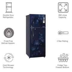 Introducing the Godrej Eon 260L 2 Star Blue Frost Free Double Door Refrigerator, RT EON 275B 25 HI - the perfect addition to your kitchen. This refrigerator from the renowned brand Godrej offers a spacious storage capacity of 260L, providing ample space for all your food and beverage needs. With its attractive blue color, it adds a touch of elegance to any kitchen decor.