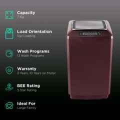In summary, the Godrej Eon Allure 7kg 5 Star Cocoa Brown Fully Automatic Top Load Washing Machine is the perfect addition to your appliances and utilities collection. Its top load design, cocoa brown color, energy-efficient operation, 7kg wash capacity, 13 wash programs, and powerful wash motor make it an ideal choice for every household. Trust the brand Godrej for durability, performance, and reliability.