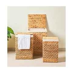 Introducing the Homesmiths Natural Water Hyacinth Laundry Hamper, a must-have addition to your home storage collection. This small-sized laundry hamper, measuring 32x22x51cm, is perfect for organizing and storing your laundry essentials. Crafted from high-quality water hyacinth material, it exudes natural beauty and durability. The hamper is beautifully designed in a timeless natural color, making it a versatile and stylish choice for any room. Its lightweight construction, weighing only 1300g, allows for easy transportation and relocation. It comes with a convenient liner that ensures easy cleaning and maintenance. With a weight capacity of 1300g, this hamper can accommodate all your laundry needs. Model number 706614 guarantees its quality and authenticity. Upgrade your storage game with Homesmiths and make organizing a breeze!