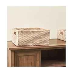 Introducing the Homesmiths 34x28x18cm Rattan Whitewashed Storage Bin With Handle. Crafted with elegance and functionality in mind, this storage bin is a perfect addition to any space. Its large size provides ample storage space, allowing you to organize and declutter your home effortlessly. Made from high-quality rattan, this bin is not only durable but also adds a touch of natural charm to your decor. The whitewashed finish exudes a sense of sophistication, making it an ideal choice for any interior style. With dimensions of 34x28x18 cm, it fits perfectly on shelves, under beds, or in closets. The strong handle adds convenience, allowing you to easily carry and transport the bin. Weight capacity of up to 500g ensures that it can safely hold various items. Upgrade your storage game with this Homesmiths Rattan Whitewashed Storage Bin, the perfect blend of style and functionality in one package.
