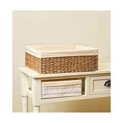 Introducing the Homesmiths 41x36x14.5cm Natural Seagrass Basket with Liner, a must-have addition to your home organization. This storage bin, designed in a rectangular shape, offers a spacious solution to declutter your space. Crafted with high-quality sea grass material, it exudes natural charm and durability. Its large size allows you to store a variety of items, from blankets to toys, maintaining a neat and tidy space effortlessly. The soothing natural color adds a touch of elegance to any room decor. With dimensions of 41x36x14.5 cm, it provides ample room for all your storage needs. The model number 706585 ensures its authenticity and superior quality. Elevate your organizing game with Homesmiths!
