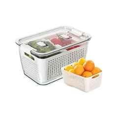 Introducing the Homesmiths 707685 Fridge Storage Container with Double Layer Fruit Basket, the perfect addition to your kitchen organization! This small-sized storage container is a must-have in the Storage \u0026 Thermoware category. Expertly crafted by Homesmiths, a trusted brand known for its top-quality products, this container is made from durable plastic material, ensuring its longevity. With its sleek white and clear color combination, it seamlessly blends into any kitchen decor. The double layer fruit basket adds extra convenience, allowing you to store and organize your fruits with ease. Measuring at 14x9.5x9 cm, this container is compact yet provides ample space for your food storage needs. The item code 707685 guarantees its authenticity. Please note that the image is for reference purposes only. Upgrade your fridge organization today with the Homesmiths 707685 Fridge Storage Container.