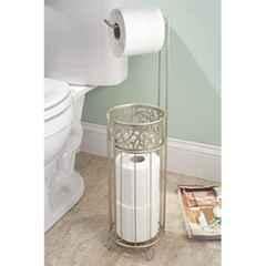 This Free-Standing Tissue Reserve can Accommodate 4 Rolls & Dispenses.