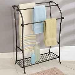 Features 3 Bars for Towels & a Bottom Shelf for Other Bath Accessories.
