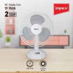 Impex 45W 1250rpm White Table Fan, TF 7505 will match all your Fans requirements in UAE. With lots of features and excellent functioning Impex 45W 1250rpm White Table Fan, TF 7505 will never disappoint you. This product is one of the best Fans from Impex available at Moglix.ae. This product meets all the company standards when it comes to safety and durability. Get your hands on new Impex 45W 1250rpm White Table Fan, TF 7505 at Moglix.ae and enjoy a hassle-free online shopping experience.