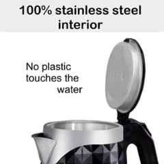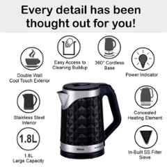 Introducing the Inalsa Diamante 1.8L Electric Kettle, a must-have in every kitchen. With a sleek double-wall design and a capacity of 1.8 liters, this kettle is perfect for brewing tea, coffee, or even instant noodles. The stainless steel inner material ensures durability, while the 1300W power consumption boils water in no time. Equipped with boil dry protection and auto-shut off features, this kettle is safe to use. The package includes 1 electric kettle, power base, and instruction manual cum warranty card. Say goodbye to waiting for water to boil with the efficient and stylish Inalsa Diamante Electric Kettle.