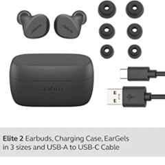 Experience premium sound quality and ultimate comfort with the Jabra Elite 2 In Ear Grey Wireless Bluetooth Earbuds. These sleek and stylish earbuds from the renowned brand Jabra deliver up to 21 hours of playback time with the included charging case. The package contents include the Jabra Elite 2 earbuds, a convenient charging case, ear gels in three sizes for a customized fit, and a USB-C cable for charging. The grey colour adds a touch of sophistication to your music listening experience. Enhance your audio with the Jabra Elite 2 earbuds - the perfect combination of style and performance. Item Code: JABRAELITE2GREY. Model: Elite 2.