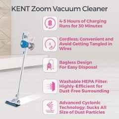 Kent Zoom 130W Blue Cordless Vacuum Cleaner, 16068 will match all your Vacuum Cleaners requirements in UAE. With lots of features and excellent functioning Kent Zoom 130W Blue Cordless Vacuum Cleaner, 16068 will never disappoint you. This product is one of the best Vacuum Cleaners from Kent available at Moglix.ae. This product meets all the company standards when it comes to safety and durability. Get your hands on new Kent Zoom 130W Blue Cordless Vacuum Cleaner, 16068 at Moglix.ae and enjoy a hassle-free online shopping experience.