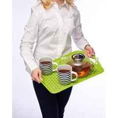 Serve Without Spills : Transport Hot Drinks Safely with This Pretty Green Serving Tray, Featuring Contrasting Non-Slip Spots.
