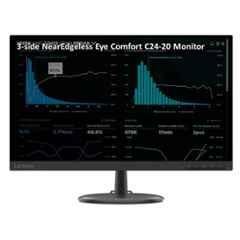 Introducing the Lenovo C24-20 62A8KAR1WW 23.8 inch Raven Black FHD VA Monitor, a sleek and stylish addition to our wide range of high-quality monitors. With a generous display size of 23.8 inches, immerse yourself in stunning visuals and crisp details. The monitor's dimensions of 20.6x54x40.4 cm make it compact and easy to fit into any workspace. Enjoy smooth and fluid visuals with its 75 Hz refresh rate, ensuring a seamless user experience. The package includes the monitor with a stand, a 1.8 m power cable, a 1.8 m HDMI cable, and a quick setup guide. With a wide viewing angle of 178 degrees, you can comfortably view the screen from multiple positions. The sleek Raven Black color adds a touch of sophistication to any setup. Thanks to the impressive display resolution of 1920x1080p, every image and video will come to life with superb clarity. Elevate your productivity and entertainment levels with the Lenovo C24-20 62A8KAR1WW 23.8 inch Raven Black FHD VA Monitor.