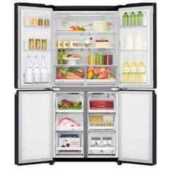 Introducing the stylish and efficient LG 594L Matte Black Side by Side Inverter Refrigerator. This refrigerator, part of the LG brand in the Refrigerators category, is designed to elevate your kitchen with its sleek matte black exterior finish. With a generous capacity of 594L, you can store all your groceries and beverages with ease. The Multi Air Flow cooling technology ensures consistent and uniform cooling throughout the refrigerator, maintaining the freshness of your food for longer periods. The refrigerator's dimensions of 835mm width and 734mm depth make it a perfect fit for any kitchen layout. Upgrade your kitchen with the LG 594L Matte Black Side by Side Inverter Refrigerator, code GC-B22FTQPL, for a perfect combination of style and functionality.