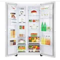 The LG 675L Linen White Side by Side Inverter Refrigerator, GC-C247UGLW, is the perfect addition to any modern kitchen. With a sleek linen white finish, this refrigerator effortlessly blends style and functionality. It boasts a spacious capacity of 675 liters, providing ample storage space for all your groceries and beverages. The multi air flow cooling technology ensures that your food remains fresh and delicious for longer periods. Measuring 715mm in depth and 912mm in width, this refrigerator is designed to fit seamlessly into your kitchen layout. The LG brand is renowned for its high-quality products, and the GC-C247UGLW is no exception. Its item code, GC-C247UGLW, guarantees a reliable and efficient performance. Choose the LG 675L Linen White Side by Side Inverter Refrigerator for a chic and practical addition to your home.