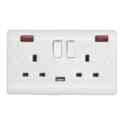 Introducing the Micron 13A 2 Gang Bakelite White Switch Socket with 2 USB Port, a must-have in the Switch & Socket Combinations category. Designed by Micron, a renowned brand in electrical accessories, this compact product measures 10.6x7.62 cm and is made of durable Bakelite material. With its 13 Amp rated current, it provides a reliable power supply for your devices. The sleek white color complements any interior decor, while the two USB ports add convenience to your daily life. Please note that the image is for reference purposes only. Identified by item code MME0251, this switch socket boasts two gangs, offering multiple power connections. Upgrade your electrical outlets with the Micron 13A 2 Gang Bakelite White Switch Socket.