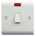 Introducing the Micron 20A 1 Gang Bakelite White DP Switch with Neon, MME0224, designed to meet all your electrical switching needs. This impeccable switch falls under the 'Switches' category and is brought to you by the renowned brand, Micron. Measuring at 7.62x7.62 cm, this compact switch fits seamlessly into any space. Crafted from high-quality Bakelite material, it guarantees durability and reliability. With a rated current of 20 Amp, this switch ensures efficient electricity flow. The elegant white color adds a touch of sophistication to your interiors. Please note that the image is for reference purposes only. With the item code MME0224, it is easily identifiable. Furthermore, this switch boasts a single-gang design, perfectly suited for your electrical arrangements. Upgrade your switches to the Micron 20A 1 Gang Bakelite White DP Switch with Neon, MME0224, and experience excellence in electrical control.