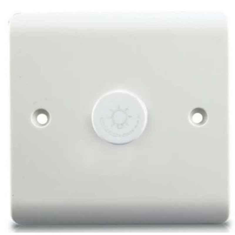 Introducing the Micron 500W 1 Gang Bakelite White Single Plate Dimmer Switch, MME0302, our latest addition to the Dimmer Controller category. Designed to bring convenience to your home lighting setup, this dimmer switch provides precise control over your lights' brightness. The switch is made from high-quality Bakelite material, ensuring durability and longevity. Its sleek white color effortlessly blends with any interior décor, giving your space a modern touch. Measuring at 7.62x7.62 cm, this compact switch is perfect for any room size. Please note that the image provided is for reference purposes only. The item code for this switch is MME0302, and it offers a rated power of 500W. With its 1 Gang feature, this switch is suitable for various lighting configurations. Upgrade your lighting experience with the Micron 500W 1 Gang Bakelite White Single Plate Dimmer Switch, MME0302.