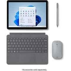 Introducing the Microsoft Surface GO-3, the perfect blend of portability and performance. This sleek and stylish 10.5-inch laptop, in classic black, is designed to keep up with your busy lifestyle. With its powerful Intel Pentium Gold-6500Y processor and 8GB of RAM, you can breeze through your tasks with ease. The laptop comes with a detachable keyboard for added convenience. The generous 128GB SSD storage capacity ensures you have ample space for all your documents, multimedia files, and more. Running on the latest Windows 11 operating system, you'll experience enhanced productivity and seamless multitasking. Please note that the image is for reference purposes only. Upgrade your computing experience with the Microsoft Surface GO-3!