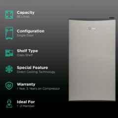 Midea 95L 1 Star Grey Direct Cool Single Door Mini Refrigerator with Reversible Door, MDRD142FGF03 will match all your Refrigerators requirements in UAE. With lots of features and excellent functioning Midea 95L 1 Star Grey Direct Cool Single Door Mini Refrigerator with Reversible Door, MDRD142FGF03 will never disappoint you. This product is one of the best Refrigerators from Midea available at Moglix.ae. This product meets all the company standards when it comes to safety and durability. Get your hands on new Midea 95L 1 Star Grey Direct Cool Single Door Mini Refrigerator with Reversible Door, MDRD142FGF03 at Moglix.ae and enjoy a hassle-free online shopping experience.
