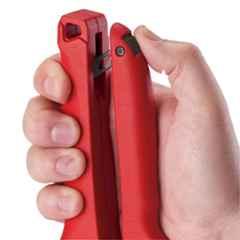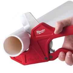 The Milwaukee 60mm PVC Ratcheting Cutter, 4932464173, is a must-have tool for any plumber or DIY enthusiast. Designed specifically for cutting PVC pipes, this cutter makes the job quick and effortless. With a bright red color and a sleek design, it is easy to identify and use. The blade measures 60mm in length, ensuring precise and clean cuts every time. Please note that the image provided is for reference purposes only. This cutter is suitable for various materials, including PVC, CPVC, PEX, PP, PB, PVDF, and PE. Its cutting capacity is an impressive 63mm, making it suitable for a wide range of pipe sizes. The item code for this cutter is 4932464173. Constructed with a strong and durable stainless steel blade, this Milwaukee cutter guarantees long-lasting performance. Upgrade your pipe cutting tools with the Milwaukee 60mm PVC Ratcheting Cutter for efficient and professional results.